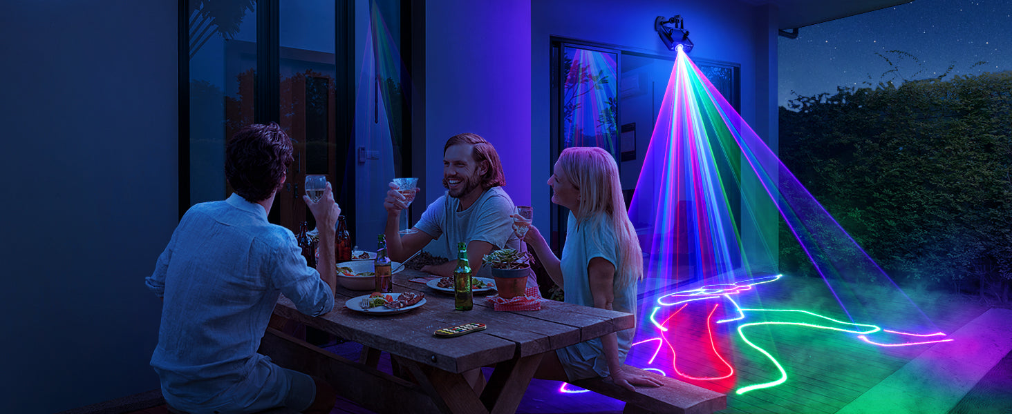 | F: Ist dieses Party-Laserlicht für drinnen und draußen geeignet? Ich möchte es überall verwenden! |