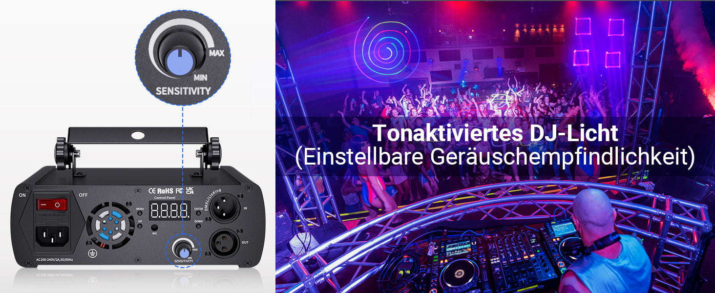 | F: Kann sich dieses Bühnenlaserlicht im Takt der Musik bewegen? |